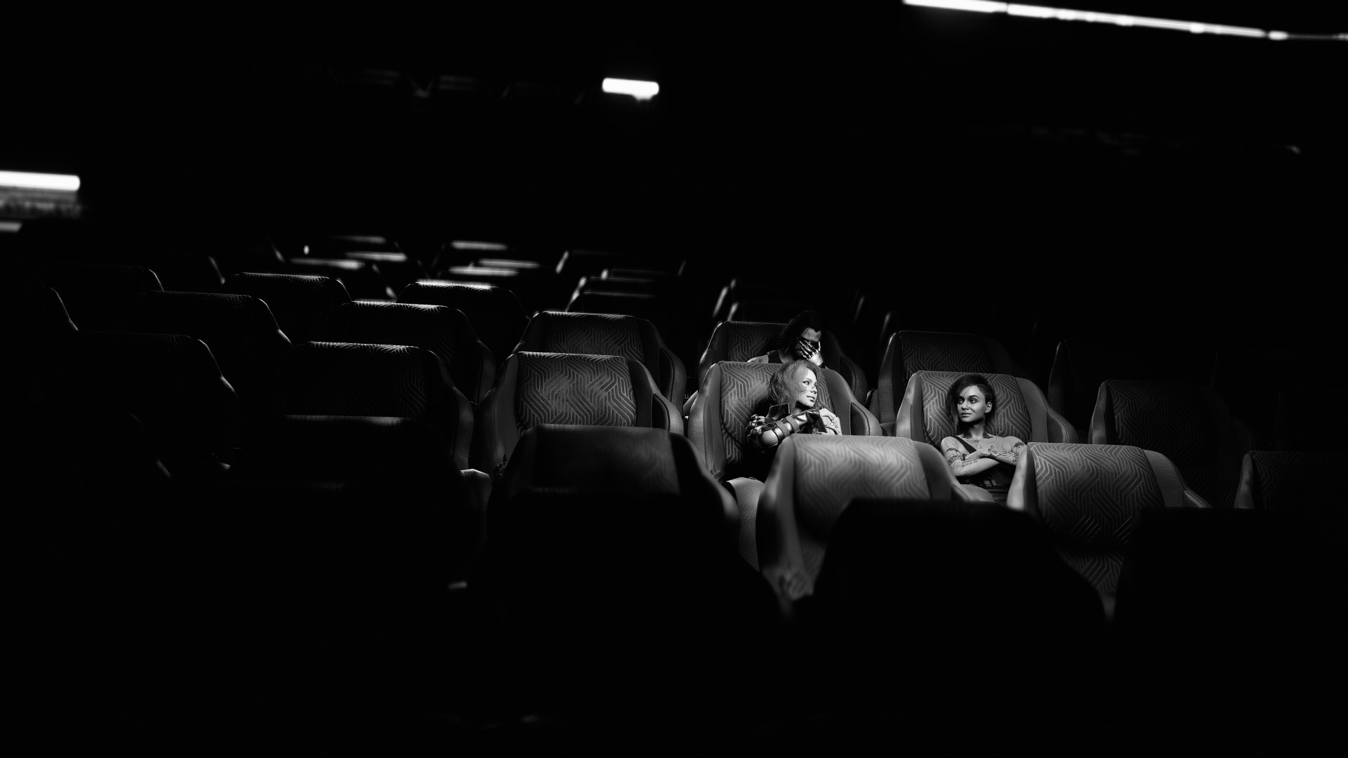 I played around with the focal distance and aperture to make V, Judy and Johnny the main focus of the capture. It also gives the room some depth and utilises the negative space around the characters.
